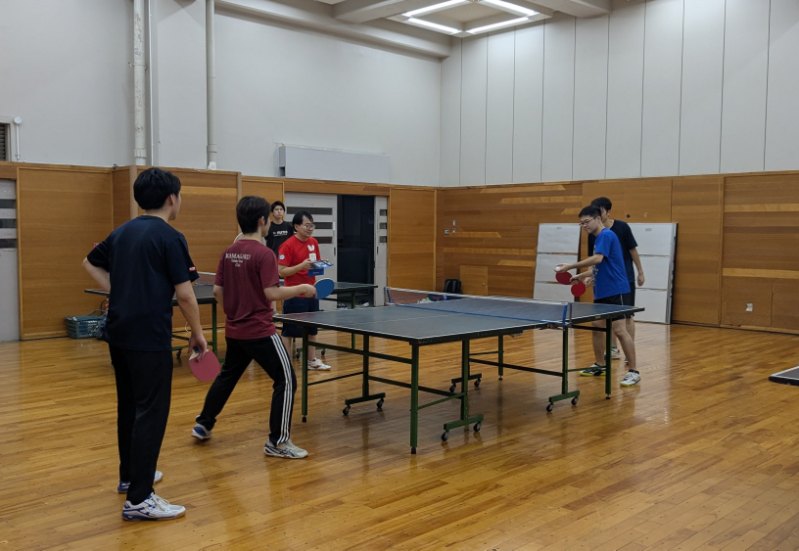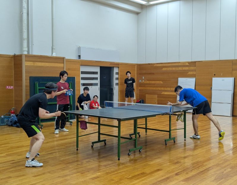 卓球は現役生も一緒に毎回トーナメント戦を実施します。中でも「永野君」というOBがとても強く、近年毎回優勝するので、「誰が永野を倒すのか」という事も幹事である私の楽しみになっています。